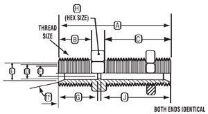 | Tube O.D. | Thread | A ±1/64 | B ±1/64 | C ±1/64 | D +.005/-.010 | E | F ±.010 | G ±1/64 | H ±1/64 | J ±1/64 | Part No. |