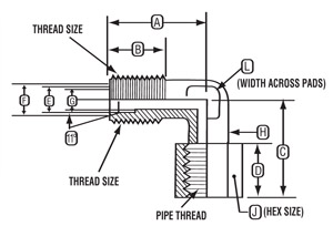 | Tube O.D. | Pipe Thd. | Thread | A ±1/64 | B ±1/64 | C ±1/64 | D ±1/64 | E +.005/-.010 | F | G ±.010 | H ±1/64 | J ±1/64 | I ±1/64 | Part No. |