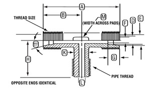 | Tube O.D. | Pipe Thd. | Thread | A ±1/64 | B ±1/64 | D +.005/-.010 | E | F ±1/64 | G ±1/64 | H ±1/64 | K ±1/64 | L ±1/64 | M ±1/64 | Part No. |