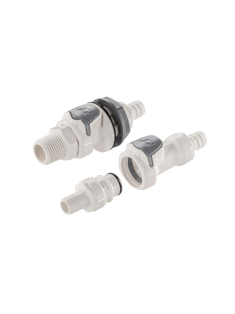 고성능 열가소성 플라스틱인 Udel® Polysulfone으로 제작된 3/8" 유량의 커플링은 고온에서 내구성과 안정성이 더욱 뛰어납니다.