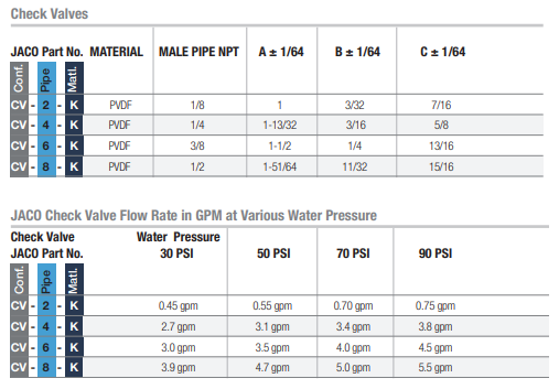 HOME > Fitting&Connecter > JACO Compression > CV(PVDF Check valves)